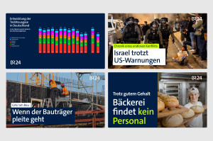 Im Sommer 2024 hat Stan Hema gemeinsam mit einem interdisziplinären Team die Angebote von BR24 unter das übergeordnete Markendach des Bayerischen Rundfunks geführt und eine klare, kohärente visuelle Identität entwickelt. Viele Ergebnisse, die wir hier gemeinsam entwickelt haben, können die anderen Angebote des BR nutzen und adaptieren, darunter Social-Media-Vorlagen, Piktogramme und Vorlagen für Infografiken.