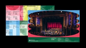 Als Teil des neuen Designsystems des Bayerischen Rundfunks entwickelte Stan Hema eine visuelle Identität für das BRRO. Sie betont die charakteristische Lebendigkeit und Vielfalt des Orchesters und stärkt zugleich dessen Zugehörigkeit zur BR-Markenfamilie.
