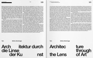 Art publications are often a medium of expression in their own right. When ARCH+ invited Karin Sander to design the content of the monographic issue 255, we were inspired by her way of working in the editorial design. She transferred to ARCH+ her method of interfering with the structures of spaces and institutions to reinterpret them and make them more accessible. The result is a publication that reflects on the relationship between art and architecture as neighbouring disciplines and invites further analysis.